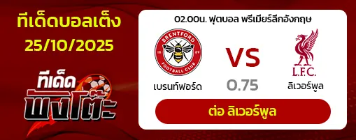 ศึกพรีเมียร์ลีก อังกฤษ ทางด้านเจ้าบ้านเบรนท์ฟอร์ด ผลงานถือว่าทำได้โอเคเลย โดย 5 เกมหลังชนะ 2 เสมอ 1 แพ้ 2 ในลีกก็อยู่ที่ 13 ในส่วนทีมเยือนลิเวอร์พูล ผลงาน 5 เกมหลัง ถือว่าอาการไม่ค่อยดีเท่าไหร่ โดยชนะ 1 แพ้ 4 ในลีกก็อยู่ที่ 3 ราคาเปิดมาเจ้าบ้านต่อครึ่งควบลูก ลิเวอร์พูล มาเยือนด้วยภารกิจสำคัญในการกลับมาเก็บ 3 แต้มในลีก เพื่อเกาะกลุ่มลุ้นแชมป์/ท็อปโฟร์ แม้ว่าฟอร์มในลีกจะยังไม่เข้าที่นัก แต่ชัยชนะครั้งใหญ่ในยูฟ่า แชมเปียนส์ ลีก น่าจะช่วยยกเครื่องสภาพจิตใจของทีมได้