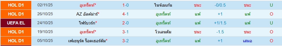 สถิติ 5 นัดหลังสุดของทั้ง 2 ทีม