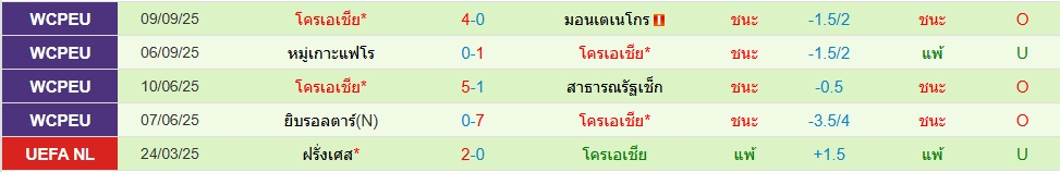 เช็ก(5นัด 10ประตู)โครเอเชีย(5 นัด 17ประตู)คัดบอลโลก 2026 โซนยุโรป กลุ่ม แอล ภาพรวมเกมนี้คาดว่าทีมเยือนเป็นฝ่ายเปิดเกมก่อนแน่ เพราะฟอร์มดูดีกว่า โดย 5 นัดหลังสุด ต่ำไป 2 เกม ทางด้านเจ้าบ้านเช็ก น่าจะมาเล่นไปตามทิศทางของเกม โดย 5 นัดหลังสุด ต่ำไป 3 เกม ราคาสองลูกครึ่ง ราคาแพงไป น่าจะไปทางต่ำ