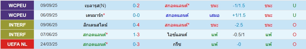 สกอตแลนด์(5นัด 7ประตู)กรีซ(5นัด 16ประตู)คัดบอลโลก 2026 โซนยุโรป กลุ่ม ซี ภาพรวมเกมนี้เป็นคาดว่าเจ้าบ้านเป็นฝ่ายเปิดเกมบุกใส่ เพราะได้เล่นในบ้านและเป็นทีมเล่นเกมบุก โดย 5 นัดหลังสุด ต่ำไป 2 เกม ทางด้านทีมเยือนกรีซ น่าจะมาแพ็คตรงกลางและรอเล่นสวนกลับ โดย 5 นัดหลัง สูงไป 5 เกม ราคาเปิดมาสองลูก ราคาสูงไปนิด กดต่ำสวยกว่า