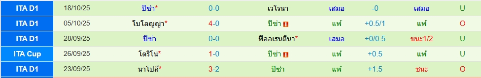 เอซี มิลาน(5นัด 10ประตู)ปิซ่า(5นัด 2ประตู)กัลโช่ เซเรียอา อิตาลี ภาพรวมเกมนี้เป็นคาดว่าเจ้าบ้านเป็นฝ่ายเปิดเกมบุกใส่ เพราะเกมรุกตอนนี้ดุสุดๆ โดย 5 นัดหลังสุด สูงไป 4 เกม ทางด้านทีมเยือนปิซ่า น่าจะมาตั้งรับเต็มระบบ โดย 5 นัดหลัง สูงไป 2 เกม ราคาเปิดมาสามลูก ราคาโอเคเลย กดโอเวอร์ได้เลย