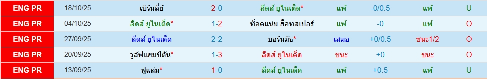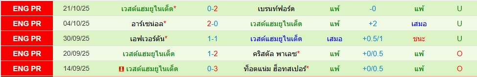 สถิติ 5 นัดหลังสุดของทั้ง 2 ทีม