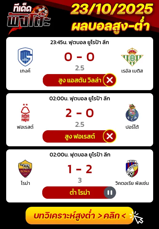ทีเด็ดสกอร์สูงต่ำ 24/10/25