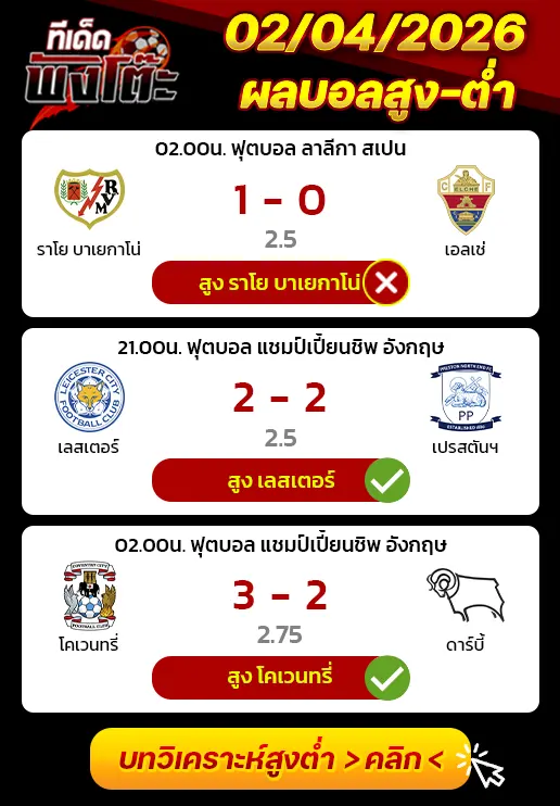 ทีเด็ดสกอร์สูงต่ำ 04/04/26