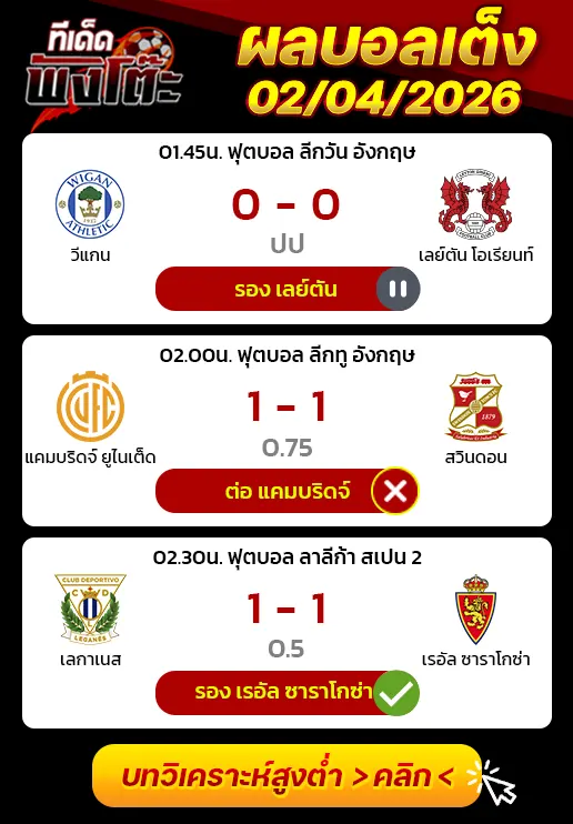11/03/26 ชนะ บริสตอล ซิตี้ 2-0 (เหย้า) แชมเปี้ยนชิพ / ต่อ 0+0.5 ได้