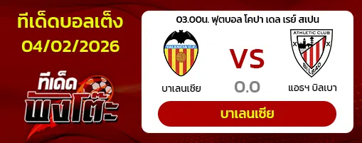 ศึกโคปา เดล เรย์ สเปน ทางด้านเจ้าบ้านบาเลนเซีย ผลงานกำลังดีขึ้นเรื่อยๆ โดย 5 เกมหลังชนะ 3 เสมอ 2 ในลีกก็อยู่ที่ 17 ในส่วนทีมเยือนแอธฯ บิลเบา ผลงาน 5 เกมหลัง ก็ไม่ค่อยดี โดยชนะ 1 เสมอ 1 แพ้ 3 ในลีกก็อยู่ที่ 11 ราคาเปิดมาเสมอ เกมนี้ความได้เปรียบอยู่ที่ฝั่ง บาเลนเซีย อย่างชัดเจน ไม่ใช่เพราะฟอร์มโดยรวมดีกว่า แต่เป็นเพราะสภาพทีมของบิลเบาที่ “พิการ” ในแดนหลัง