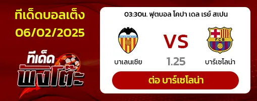 27/01/25 ชนะ บาเลนเซีย 7-1 (เหย้า) ลา ลีกา / ต่อ 1.5+2 ได้