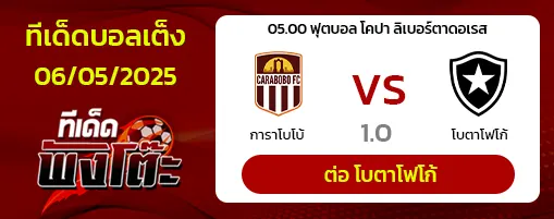 ศึกโคปา ลิเบอร์ตาดอเรส (กลุ่ม เอ) เจ้าบ้านคาราโบโบ้ ผลงานถือว่าฟอร์มยังไม่นิ่งเลย โดย 5 เกมหลัง ชนะ 2 เสมอ 3 ในกลุ่มอยู่ที่ 4 ในส่วนทีมเยือนโบตาโฟโก้ ผลงาน 5 เกมหลัง ก็ถือว่าไม่ค่อยดีเท่าไหร่ โดยชนะ 2 แพ้ 3 ในกลุ่มอยู่ที่ 3 ราคาเปิดมาทีมเยือนต่อหนึ่งลูก มองดูเกมนี้้ทีมเยือนดูพร้อมกว่าเยอะ เพราะเจ้าบ้านใน้วยนี้ฟอร์มไม่ค่อยดี