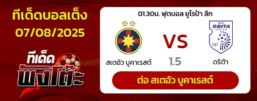 ศึกยูโรป้า ลีก รอบคัดเลือก (นัดแรก) ทางด้านสเตอัว บูคาเรสต์ ผลงานถือว่าอาการไม่ค่อยดีเลย โดย 5 เกมหลังชนะ 1 แพ้ 4 ในส่วนทีมเยือนดริต้า ผลงาน 5 เกมหลัง ถือว่าดูดีกว่านิดหน่อย โดยชนะ 3 แพ้ 2 ราคาเปิดมาเจ้าบ้านต่อลูกครึ่ง มองดูเกมนี้คิดว่าเจ้าบ้านอย่างสเตอัว บูคาเรสต์ เพราะเกมนี้ได้เล่นในบ้านและต้องเน้นเพื่อเรียกความมั่นใจกลับมา ขอเชียร์สเตอัวสุดใจ