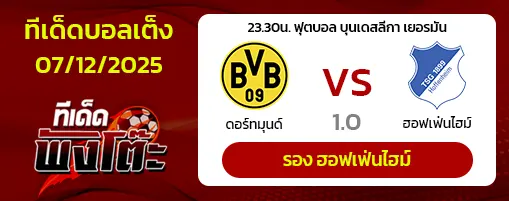 ศึกบุนเดสลีกา เยอรมัน ทางด้านเจ้าบ้านดอร์ทมุนด์ ผลงานถือว่าได้อยู่ โดย 5 เกมหลังชนะ 2 เสมอ 2 แพ้ 1 ในลีกก็อยู่ที่ 3 ในส่วนทีมเยือนฮอฟเฟ่นไฮม์ ผลงาน 5 เกมหลัง ถือว่าดุดันเลย โดยชนะ 4 เสมอ 1 ในลีกก็อยู่ที่ 5 ราคาเปิดมาเจ้าบ้านต่อหนึ่งลูก เกมนี้รับประกันความมันส์และ ประตูที่ต้องเกิดขึ้นเยอะ เนื่องจากทั้งสองทีมมีสถิติการยิงและเสียประตูที่สูง ดอร์ทมุนด์ ต้องการชัยชนะอย่างยิ่งเพื่อรักษาตำแหน่งในกลุ่มลุ้นแชมป์ ขณะที่ ฮอฟเฟ่นไฮม์ จะสู้เต็มที่เพื่อเกาะกลุ่มพื้นที่ยุโรป