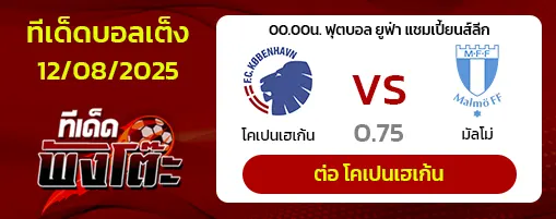 06/08/25 เสมอ โคเปนเฮเก้น 0-0 (เหย้า) แชมเปี้ยนส์ ลีก / รอง 0+0.5 ได้ครึ่ง
