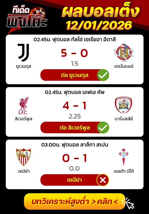 ทีเด็ดบอลเต็ง 13/01/26