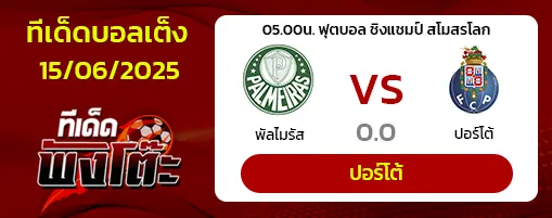 ศึกฟีฟ่า คลับ เวิลด์ คัพ 2025 กลุ่ม เอ เจ้าบ้านพัลไมรัส ผลงานถือว่าดูโอเคเลย โดย 5 เกมหลัง ชนะ 3 แพ้ 2 ในรายการนี้ก็อยู่ที่ 3 ในส่วนทีมเยือนปอร์โต้ ผลงาน 5 เกมหลัง ถือว่าดูดีกว่าหน่อย โดยชนะ 4 แพ้ 1 ในรายการนี้ก็อยู่ที่ 4 ราคาเปิดมาเสมอ เกมนี้คิดว่าปอร์โต้ดูดีกว่า เพราะช่วงหลังจัดว่าผลงานดีและทรงบอลแข็งแกร่งและระบบทีมแน่น เกมนี้มองยังไงก็ปอร์โต้มาแน่