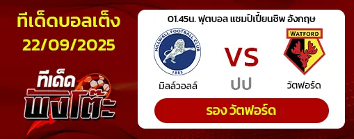 ศึกแชมป์เปี้ยนชิพ อังกฤษ ทางด้านเจ้าบ้านมิลล์วอลล์ ผลงานถือว่าดูโอเค โดย 5 เกมหลังชนะ 2 เสมอ 2 แพ้ 1 ในลีกก็อยู่ที่ 13 ในส่วนทีมเยือนวัตฟอร์ด ผลงาน 5 เกมหลัง ถือว่าไม่ค่อยดีเท่าไหร่ โดยชนะ 1 เสมอ 2 แพ้ 2 ในลีกก็อยู่ที่ 17 ราคาเปิดมาเจ้าบ้านต่อ ปป เกมนี้เป็นการพบกันของสองทีมที่มีจุดเด่นในเรื่องของความรัดกุม แต่ก็มีปัญหาในเรื่องของความไม่สม่ำเสมอ มิลล์วอลล์ได้เปรียบในฐานะทีมเจ้าบ้าน แต่ก็ต้องแบกรับสถิติการแพ้ในบ้าน 2 นัดติดต่อกัน ขณะที่วัตฟอร์ด มีฟอร์มเยือนที่ย่ำแย่