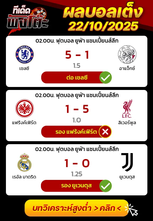 05/10/25 ชนะ เด็นเดอร์ 2-1 (เหย้า) เบลเยียม เฟิร์ส ดิวิชั่น อา / ต่อ 1+1.5 เสียครึ่ง