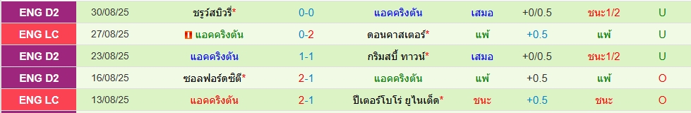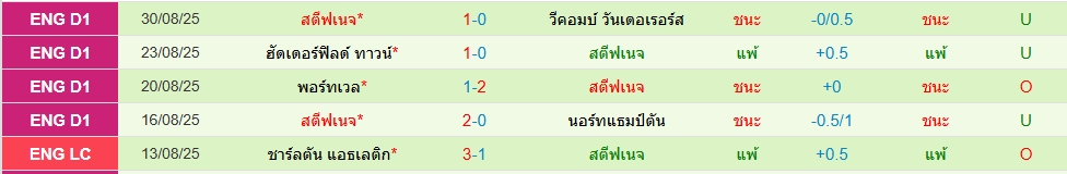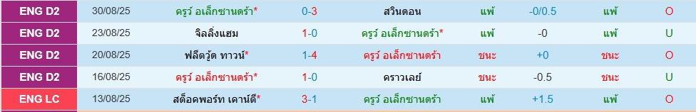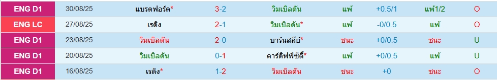 สถิติ 5 นัดหลังสุดของทั้ง 2 ทีม
