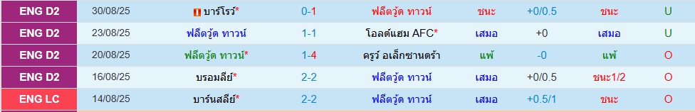 ฟลีทวู้ด(5นัด 7ประตู)แอคคริงตัน(5 นัด 4ประตู)จอห์นสโตนส์ เพนท์โทรฟี่ ภาพรวมเกมนี้เจ้าบ้านเปิดเกมก่อนแน่นอน เพราะช่วงนี้ฟอร์มก็ดูโอเคอยู่ โดย 5 นัดหลังสุด สูงไป 3 เกม ทางด้านทีมเยือนแอคคริงตัน น่าจะมาเล่นให้รัดกุม โดย 5 นัดหลังสุด สูงไป 2 เกม ราคาเปิดมาสองลูกครึ่ง ราคาโอเคเลย กดโอเวอร์ไปอีก