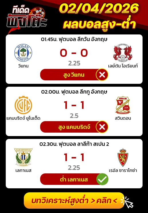 ทีเด็ดสกอร์สูงต่ำ 03/04/26