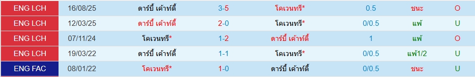 โคเวนทรี่(5นัด 11ประตู)ดาร์บี้(5นัด 7ประตู)แชมป์เปี้ยนชิพ อังกฤษ ภาพรวมเกมนี้เป็นคาดว่าเจ้าบ้านเป็นฝ่ายเปิดเกมบุกใส่ เพราะฟอร?มกำลังดีขึ้นเรื่อยๆ โดย 5 นัดหลังสุด สูงไป 4 เกม ทางด้านทีมเยือนดาร์บี้ น่าจะมาแพ็คตรงกลางและรอสวนกลับ โดย 5 นัดหลัง สูงไป 2 เกม ราคาเปิดมาสองลูกครึ่งควบสาม ราคาไปได้ กดโอเวอร์ดีกว่า