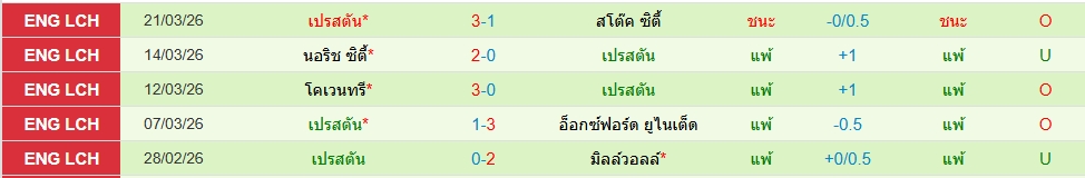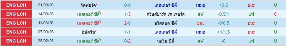 สถิติ 5 นัดหลังสุดของทั้ง 2 ทีม