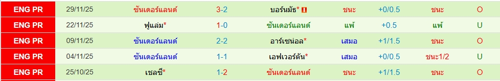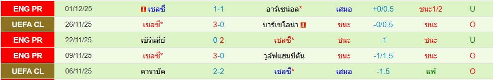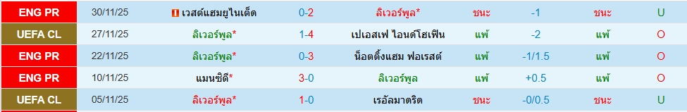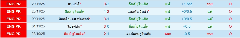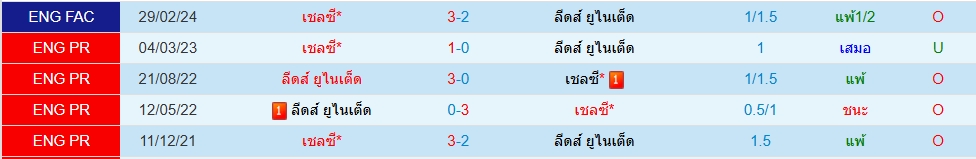 สถิติ 5 นัดหลังสุดของทั้ง 2 ทีม