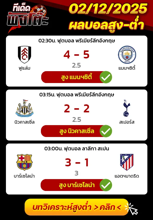 ทีเด็ดสกอร์สูงต่ำ 03/12/25