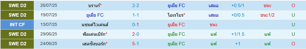 ยูเมีย(5นัด 5ประตู)ฟัลเคนเบิร์กส์(5นัด 7ประตู)สวีเดน ซูเปอร์เร็ตเท่น ภาพรวมเกมนี้เป็นคาดว่าทีมเยือนเป็นฝ่ายเปิดเกมบุกใส่ เพราะฟอร์มโดยรวมใช้ได้ โดย 5 นัดหลังสุด สูงไป 3 เกม ทางด้านเจ้สบ้านยูเมีย น่าจะมาแพ็คและรอสวน โดย 5 นัดหลัง สูงไป 2 เกม ราคาเปิดมาสองลูกครึ่ง ราคากำลังดี น่าจะใส่โอเวอร์