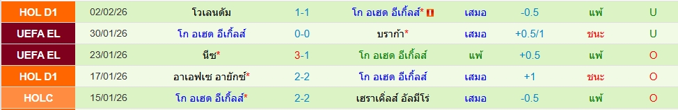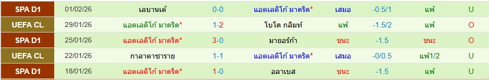 สถิติ 5 นัดหลังสุดของทั้ง 2 ทีม