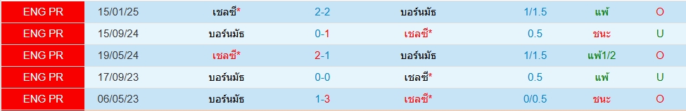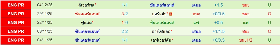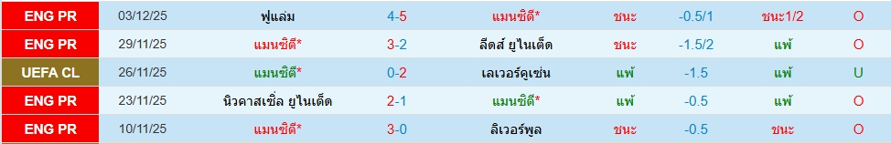 สถิติ 5 นัดหลังสุดของทั้ง 2 ทีม