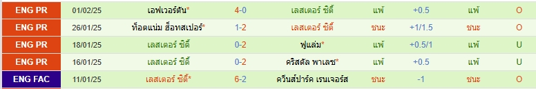 สถิติ 5 นัดหลังสุดของทั้ง 2 ทีม