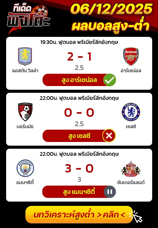 ทีเด็ดสกอร์สูงต่ำ 07/12/25