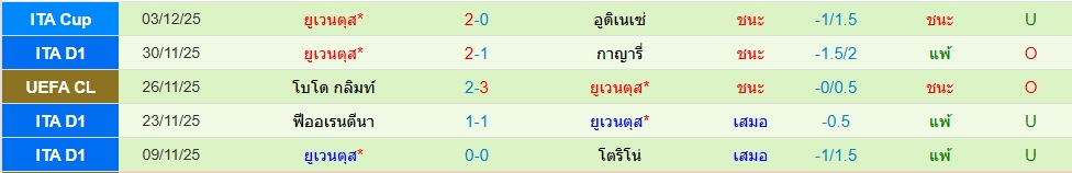 สถิติ 5 นัดหลังสุดของทั้ง 2 ทีม