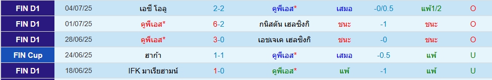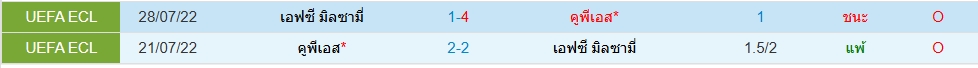 คูพีเอส(5นัด 12ประตู)มิลซามี่(5 นัด 8ประตู)ยูฟ่า แชมเปี้ยนส์ลีก รอบคัดเลือก (นัดแรก) ภาพรวมเกมนี้คาดว่าเจ้าบ้านเป็นฝ่ายเปิดเกมก่อนแน่ เพราะฟอร์มกำลังดี โดย 5 นัดหลังสุด สูงไป 4 เกม ทางด้านทีมเยือนมิลซามี่ น่าจะมาแพ็คและเล่นเกมสวน โดย 5 นัดหลังสุด สูงไป 4 เกม ราคามาสองลูกครึ่ง ราคาดีเลย น่าจะไปทางสูง