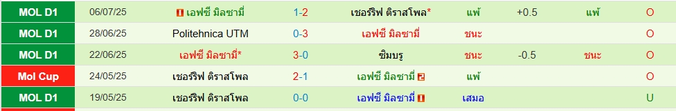 สถิติ 5 นัดหลังสุดของทั้ง 2 ทีม