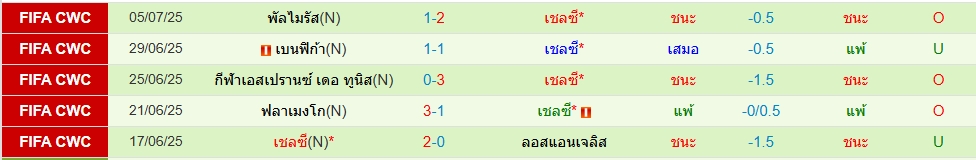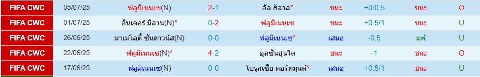 ฟลูมิเนนเซ่(5นัด 8ประตู)เชลซี(5 นัด 9ประตู)ฟีฟ่า คลับ เวิลด์ คัพ (รอบรองชนะเลิศ) ภาพรวมเกมนี้เชลซีเปิดเกมก่อนแน่นอน เพราะฟอร์มช่วงหลังดุดันขึ้นเรื่อยๆ โดย 5 นัดหลังสุด ต่ำไป 2 เกม ทางด้านฟลูมิเนนเซ่ น่าจะมาแพ็คให้แน่นและรอสวน โดย 5 นัดหลังสุด ต่ำไป 3 เกม ราคาเปิดมาสองลูกครึ่ง บอลรอบรองน่าจะอึดอัด กดต่ำน่าจะดีกว่า