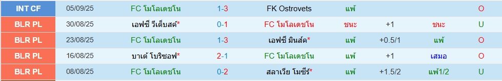 โมโลเดชโน่(5นัด 4ประตู)เนมาน กร็อดโน่(5 นัด 3ประตู)เบลารุส พรีเมียร์ลีก ภาพรวมเกมนี้คาดว่าทีมเยือนเป็นฝ่ายเปิดเกมก่อนแน่ เพราะต้องเรียกความมั่นใจสักหน่อย โดย 5 นัดหลังสุด ต่ำไป 4 เกม ทางด้านเจ้าบ้านโมโลเดชโน่ น่าจะมาเล่นตั้งรับรอสวน โดย 5 นัดหลังสุด ต่ำไป 2 เกม ราคาสองลูกครึ่ง เกมรุกมีปัญหาทั้งคู่ น่าจะไปทางต่ำ