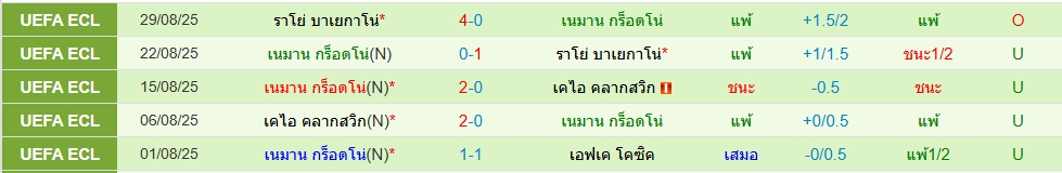 สถิติ 5 นัดหลังสุดของทั้ง 2 ทีม