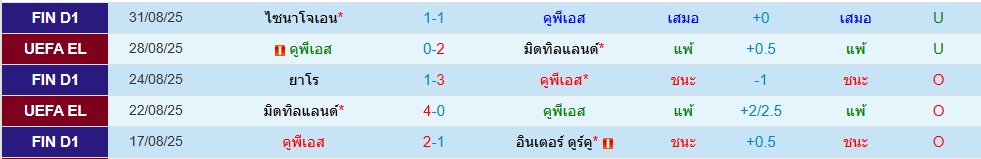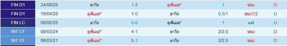 คูพีเอส(5นัด 6ประตู)ยาโร(5นัด 6ประตู)ฟินแลนด์ คัพ ภาพรวมเกมนี้เป็นคาดว่าเจ้าบ้านเป็นฝ่ายเปิดเกมบุกใส่ เพราะฟอร์มเค้นฟอร์มกันสักหน่อย โดย 5 นัดหลังสุด สูงไป 3 เกม ทางด้านทีมเยือนยาโร น่าจะมาไปตามจังหวะ โดย 5 นัดหลัง สูงไป 4 เกม ราคาเปิดมาสามลูก ราคากำลังดี น่าจัดไปทางโอเวอร์