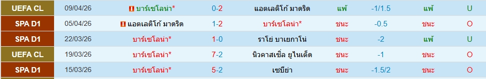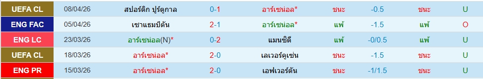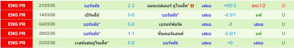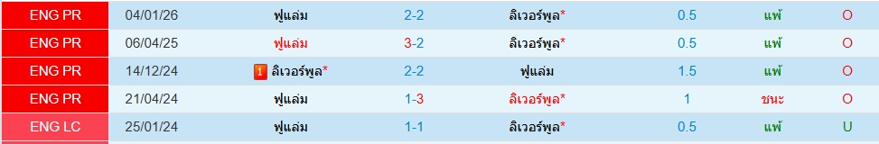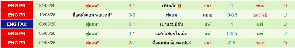 สถิติ 5 นัดหลังสุดของทั้ง 2 ทีม