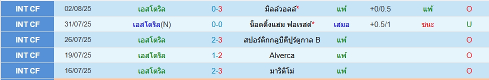 สถิติ 5 นัดหลังสุดของทั้ง 2 ทีม