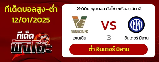เวเนเซีย(5นัด 7ประตู)อินเตอร์ มิลาน(5 นัด 11ประตู)กัลโช่ เซเรียอา อิตาลี ภาพรวมเกมนี้คาดว่าทีมเยือนเป็นฝ่ายเปิดเกมก่อนแน่ เพราะต้องเรียกความมั่นใจสักหน่อย หลังสะดุดมา โดย 5 นัดหลังสุด ต่ำไป 3 เกม ทางด้านเจ้าบ้านเวเนเซีย มาตั้งรับรอสวนแน่นอน เพราะเกมรับถือว่าดีอยู่ โดย 5 นัดหลังสุด ต่ำไป 2 เกม แต่ราคาเปิดมาสามลูก ราคาแพงไปนิด ใส่ต่ำรอเลย