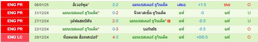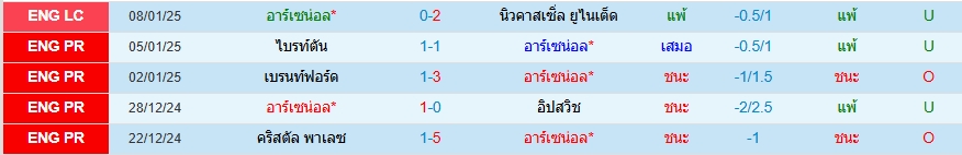 สถิติ 5 นัดหลังสุดของทั้ง 2 ทีม