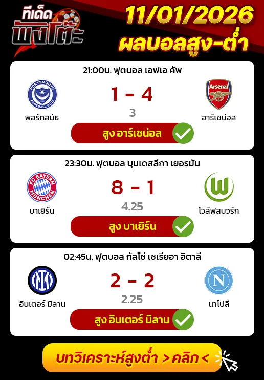 ทีเด็ดสกอร์สูงต่ำ 12/01/26