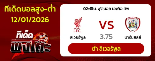 ลิเวอร์พูล(5นัด 6ประตู)บาร์นสลี่ย์(5 นัด 6ประตู)เอฟเอ คัพ ภาพรวมเกมนี้คาดว่าเจ้าบ้านเป็นฝ่ายเปิดเกมก่อนแน่ เพราะคุณภาพทีมดีกว่ามากและได้เล่นในบ้าน โดย 5 นัดหลังสุด ต่ำไป 2 เกม ทางด้านทีมเยือนบาร์นสลี่ย์ น่าจะมาแพ็คให้แน่นและรับรอสวน โดย 5 นัดหลังสุด ต่ำไป 2 เกม ราคาเปิดมาสามลูกครึ่งควบสี่ ราคาพอไหว น่าจะไปทางต่ำ