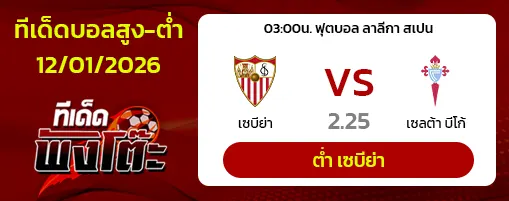 เซบีย่า(5นัด 5ประตู)เซลต้า บีโก้(5นัด 9ประตู)ลาลีกา สเปน ภาพรวมเกมนี้เป็นคาดว่าเจ้าบ้านเป็นฝ่ายเปิดเกมบุกใส่ เพราะต้องเรียกความมั่นใจด่วน โดย 5 นัดหลังสุด ต่ำไป 3 เกม ทางด้านทีมเยือนเซลต้า บีโก้ น่าจะมาตั้งรับรอสวน โดย 5 นัดหลัง ต่ำไป 2 เกม ราคาเปิดมาสองลูกควบสองครึ่ง ราคาแพงไป กดต่ำดีกว่า
