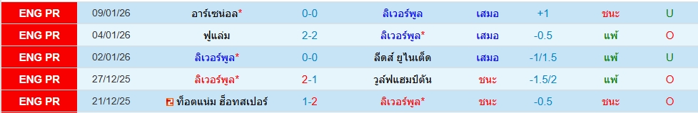 สถิติ 5 นัดหลังสุดของทั้ง 2 ทีม