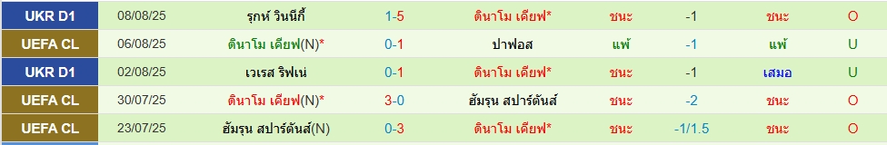 ปาฟอส(5นัด 5ประตู)ดินาโม เคียฟ(5 นัด 12ประตู)ยูฟ่า แชมเปี้ยนส์ลีก รอบคัดเลือก (นัดสอง) ภาพรวมเกมนี้คาดว่าทีมเยือนเป็นฝ่ายเปิดเกมก่อนแน่ เพราะเกมแรกโดนมาก่อน โดย 5 นัดหลังสุด ต่ำไป 2 เกม ทางด้านเจ้าบ้านปาฟอส น่าจะมาเล่นตั้งรับรอสวนตามสไตล์ที่ถนัด โดย 5 นัดหลังสุด ต่ำไป 5 เกม ราคาสองลูกครึ่ง ราคาแพงไปนิด น่าจะใส่อันเดอร์
