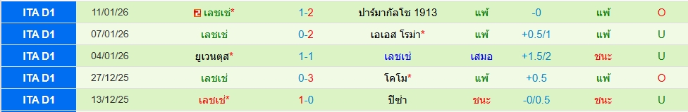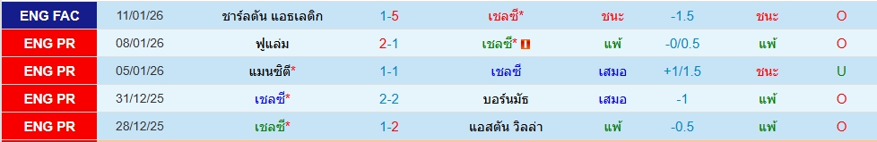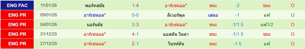สถิติ 5 นัดหลังสุดของทั้ง 2 ทีม
