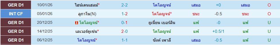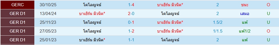 โคโลญจน์(5นัด 5ประตู)บาเยิร์น(5 นัด 22ประตู)บุนเดสลีกา เยอรมัน ภาพรวมเกมนี้ทีมเยือนเปิดเกมก่อนแน่นอน เพราะฟอร์มกำลังดุสุดๆ โดย 5 นัดหลังสุด สูงไป 5 เกม ทางด้านเจ้าบ้านโคโลญจน์ น่าจะมาตั้งรับเต็มระบบ เพราะเป็นรองเยอะ โดย 5 นัดหลังสุด สูงไป 2 เกม ราคาเปิดมาสามลูกครึ่งควบสี่ ราคาไปได้ กดโอเวอร์ไปเลย