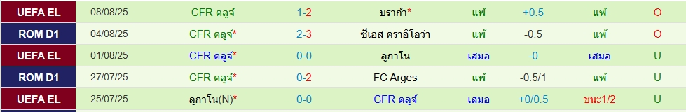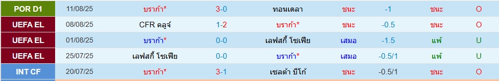 สปอร์ติ้ง บราก้า(5นัด 8ประตู)ซีเอฟอาร์ คลูจ(5 นัด 3ประตู)ยูโรป้า ลีก รอบคัดเลือก (นัดสอง) ภาพรวมเกมนี้คาดว่าเจ้าบ้านเป็นฝ่ายเปิดเกมก่อนแน่ เพราะฟอร์มโดยรวมกำลังดีขึ้นเรื่อยๆ โดย 5 นัดหลังสุด ต่ำไป 2 เกม ทางด้านทีมเยือนซีเอฟอาร์ คลูจ น่าจะมาเล่นตั้งรับรอสวน โดย 5 นัดหลังสุด ต่ำไป 3 เกม ราคาสองลูกครึ่ง ราคาแพงไปนิด น่าจะใส่ต่ำ